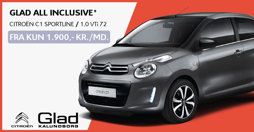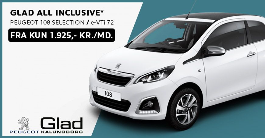 Bliv godt kørende i en helt ny Peugeot eller Citroën ”GLAD ALL INCLUSIVE*”. Det er billigere end du tror! Med en lille udbetaling og din gamle skrotbil i bytte, kan du blive ejer af en spritny bil inklusiv service og forsikring til en skarp samlet pris.