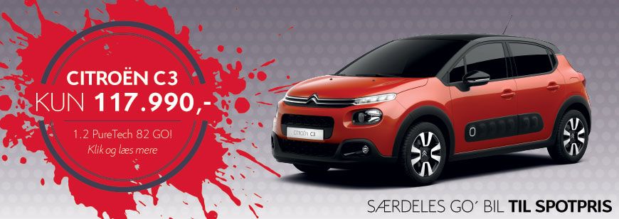 Køb den populære Citroën C3 1.2 PureTech 82 GO! Til kun 117.990 kr.