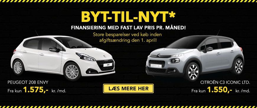 Så har du også stadig mulighed for at benytte vores særligt skarpe Byt-til-Nyt tilbud, hvor du får nem, overskuelig og billig finansering af din nye bil.
