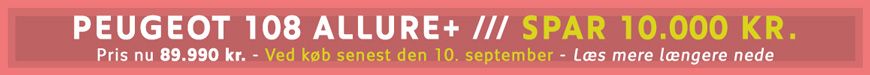 Ovenstående Peugeot 108 Allure+ tilbud gælder kun ved køb til og med 10. september 2019